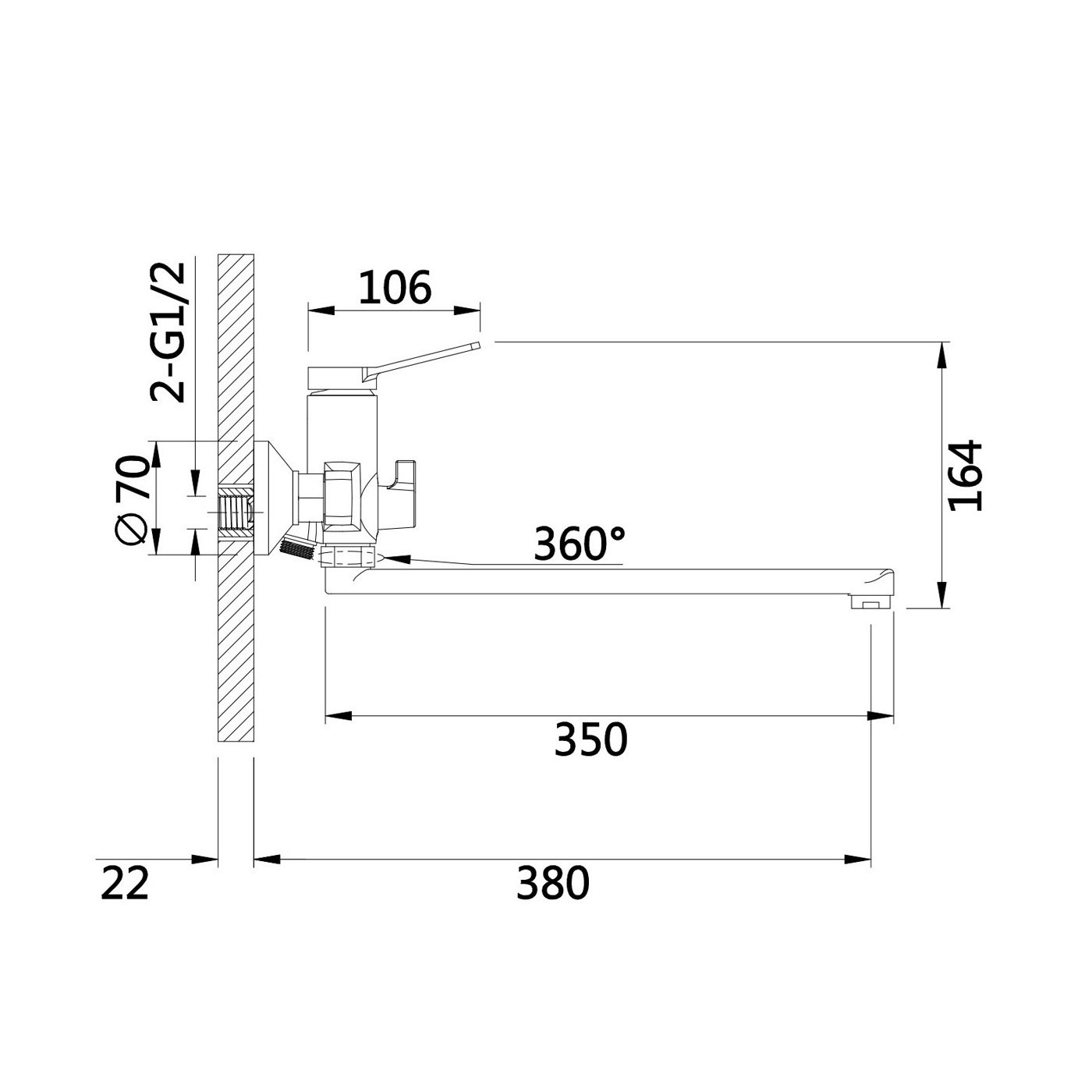 Комплектация: Смеситель, шланг, душевая лейка, держатель душевой лейки, эксцентрики, инструкция;