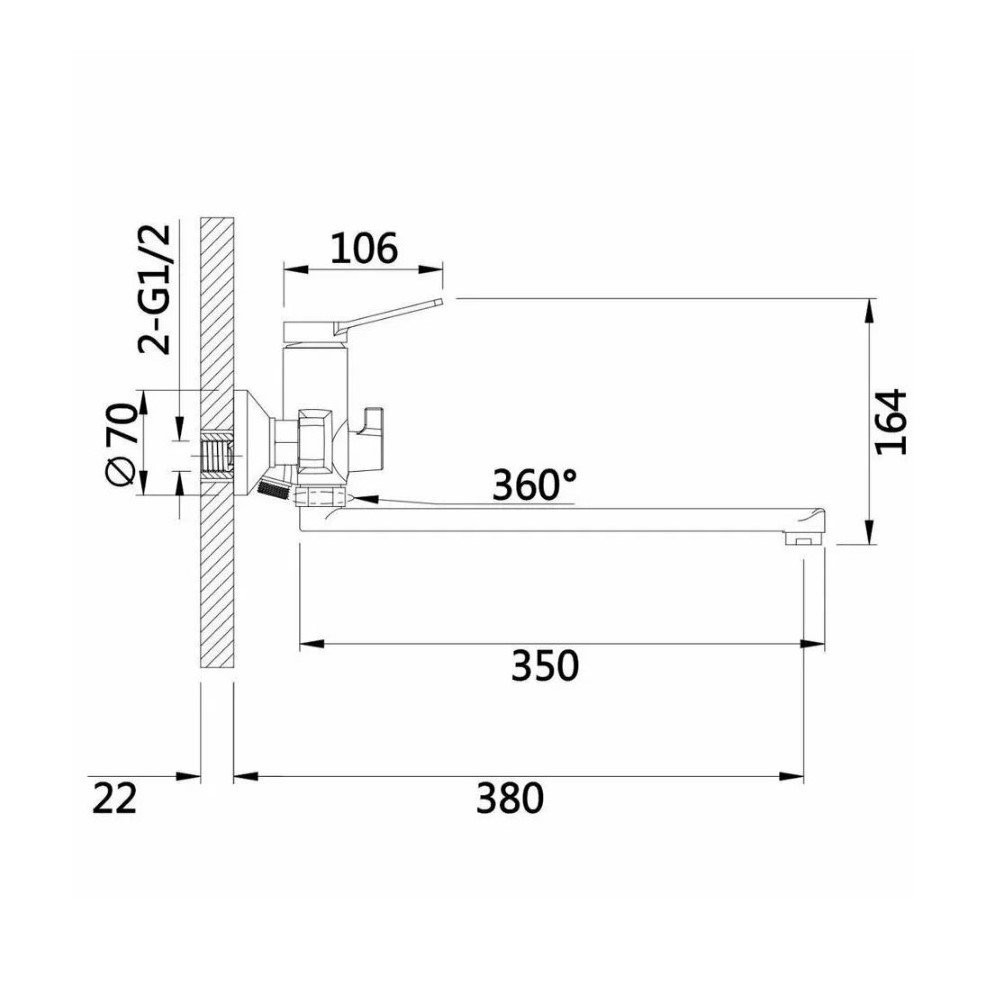 Вращение излива: поворотный;