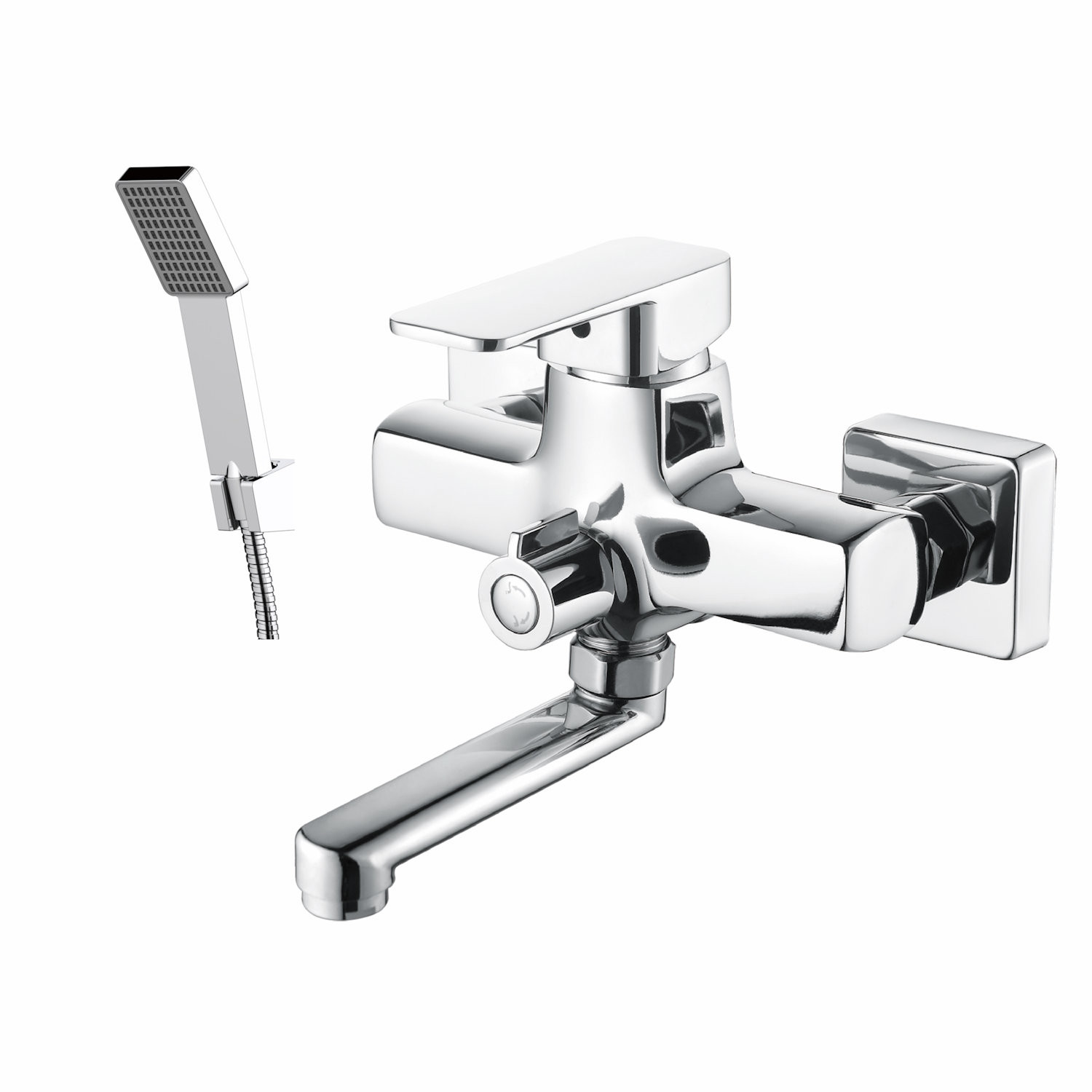 Комплектация: Смеситель, шланг, душевая лейка, держатель душевой лейки, эксцентрики, инструкция;