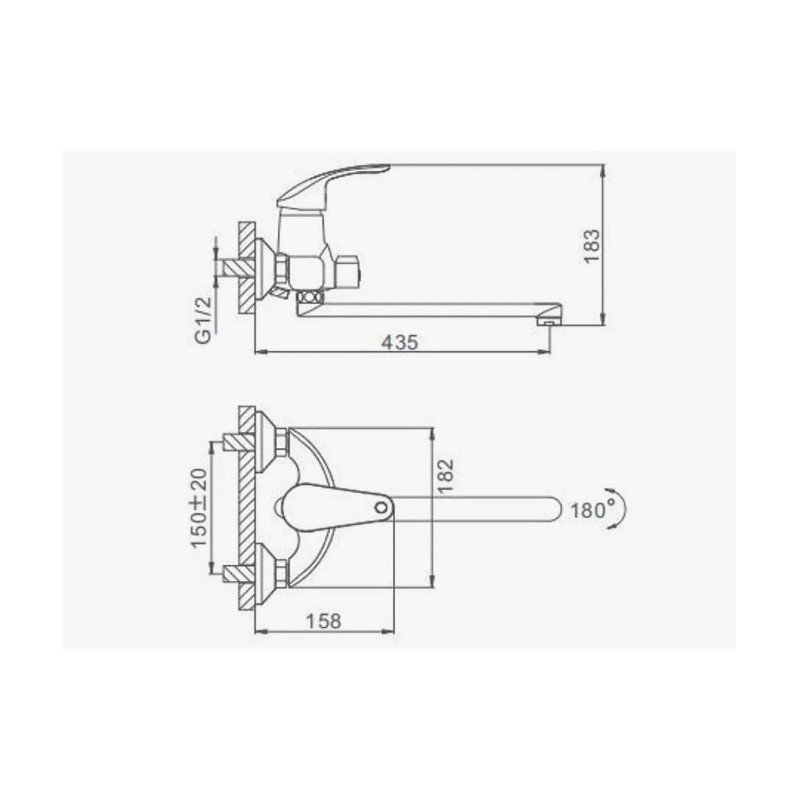 Смеситель для ванны D-Lin D147401-2, хром. Излив: традиционный, поворотный.