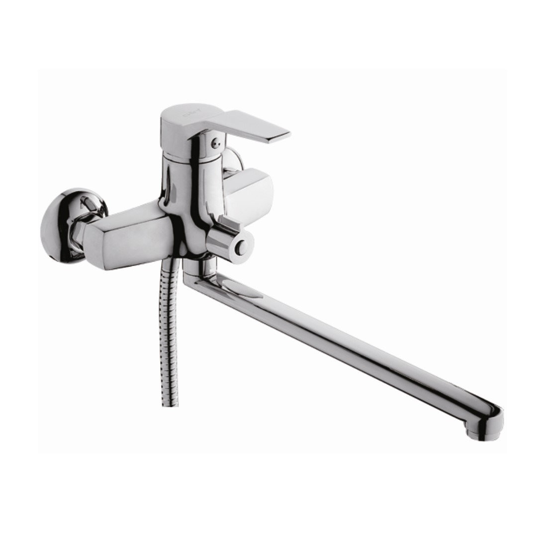 Комплектация: Смеситель, шланг, душевая лейка, держатель душевой лейки, эксцентрики, инструкция;