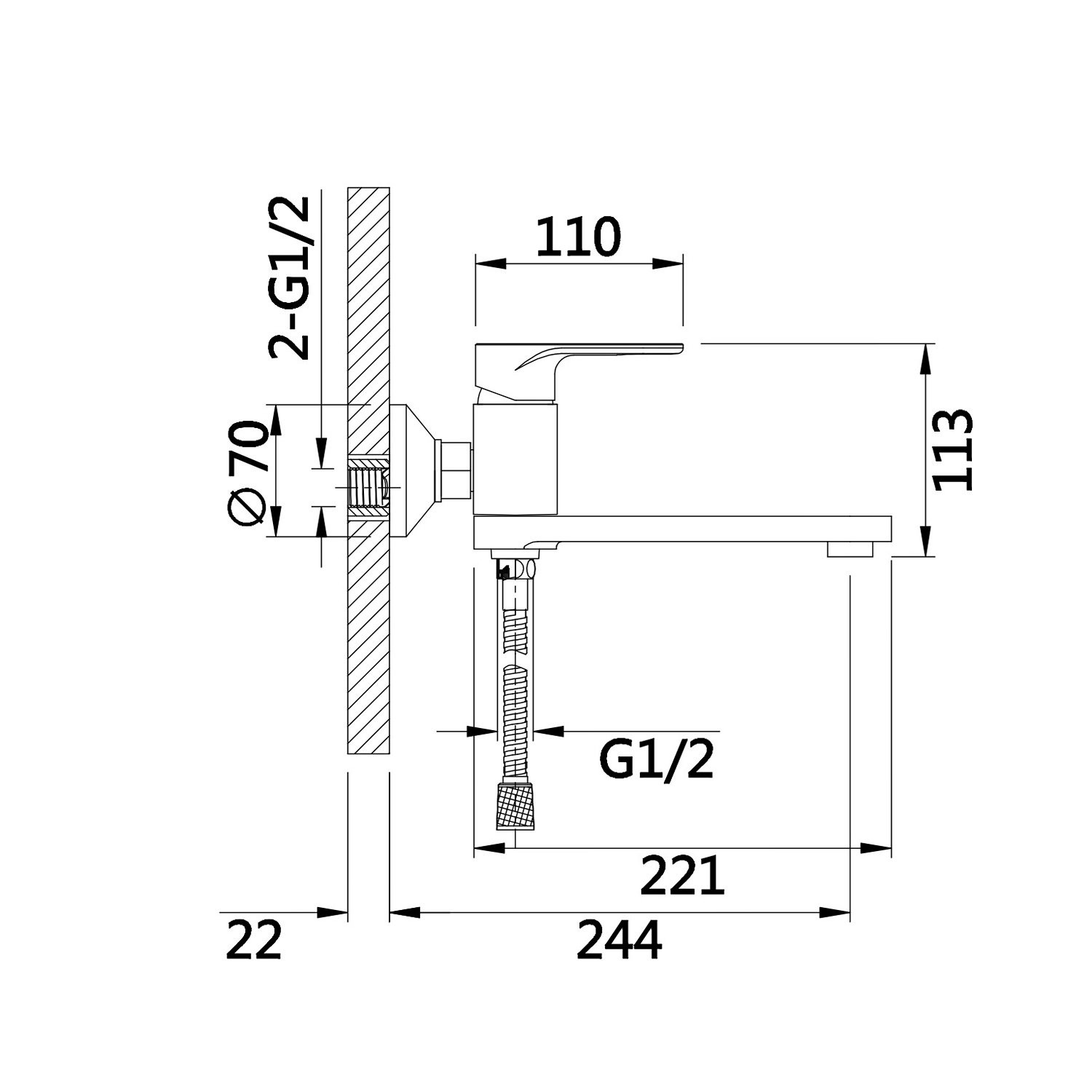 Комплектация: Смеситель, шланг, душевая лейка, эксцентрики, инструкция;