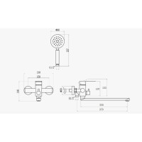 Комплектация: Смеситель, шланг, душевая лейка, держатель душевой лейки, эксцентрики, инструкция;