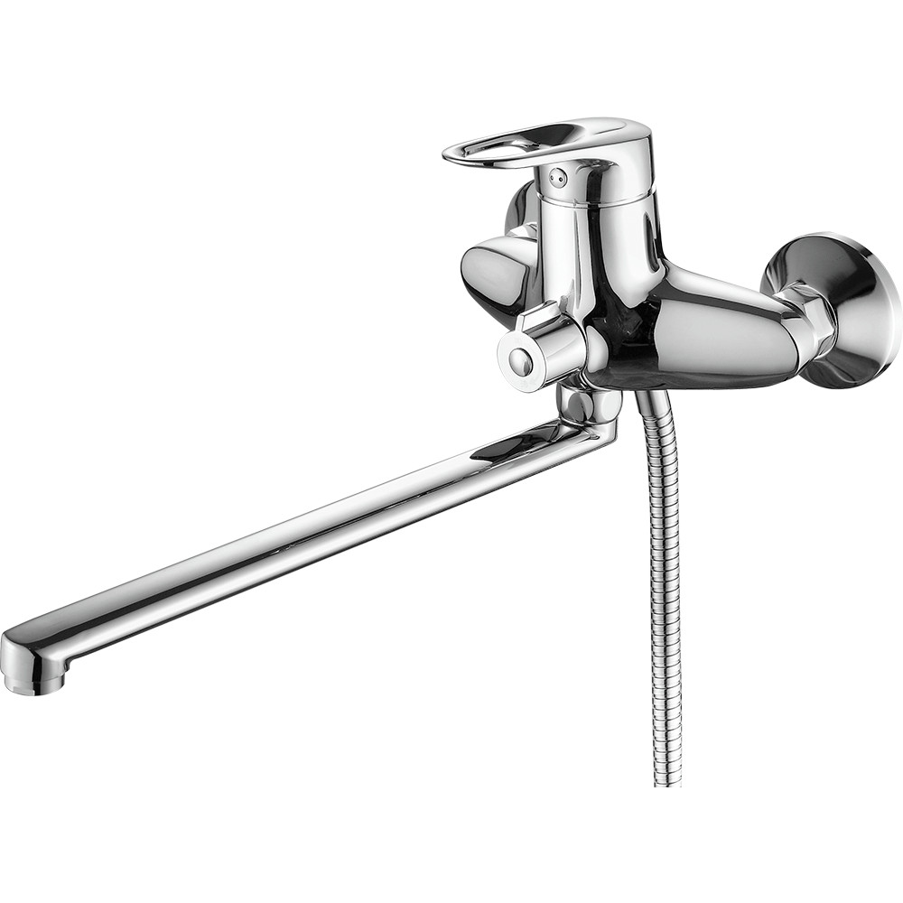 Смеситель для ванны FASHUN A2204, хром. Материал: латунь. Вращение излива: поворотный. Управление: рычажное. Душевой гарнитур в комплекте: да.
