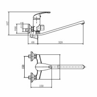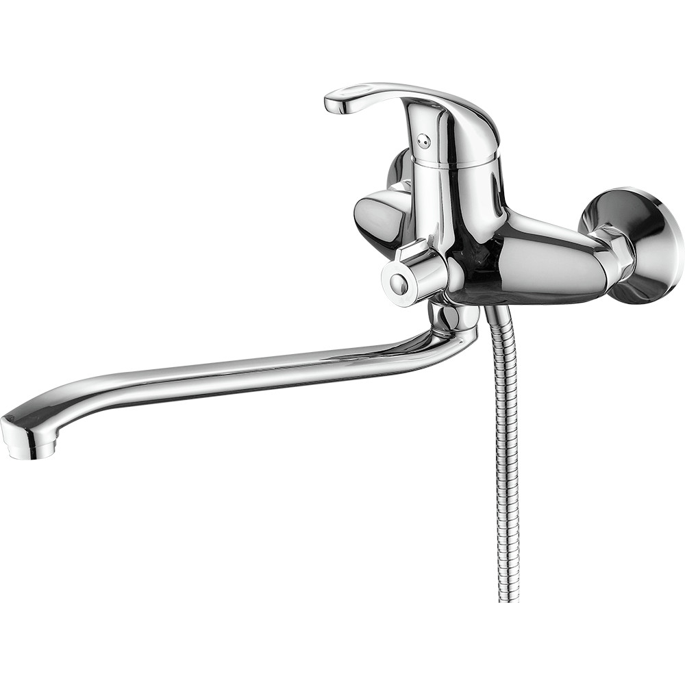 Смеситель для ванны FASHUN A2205, хром. Материал: латунь. Вращение излива: поворотный. Управление: рычажное. Душевой гарнитур в комплекте: да.