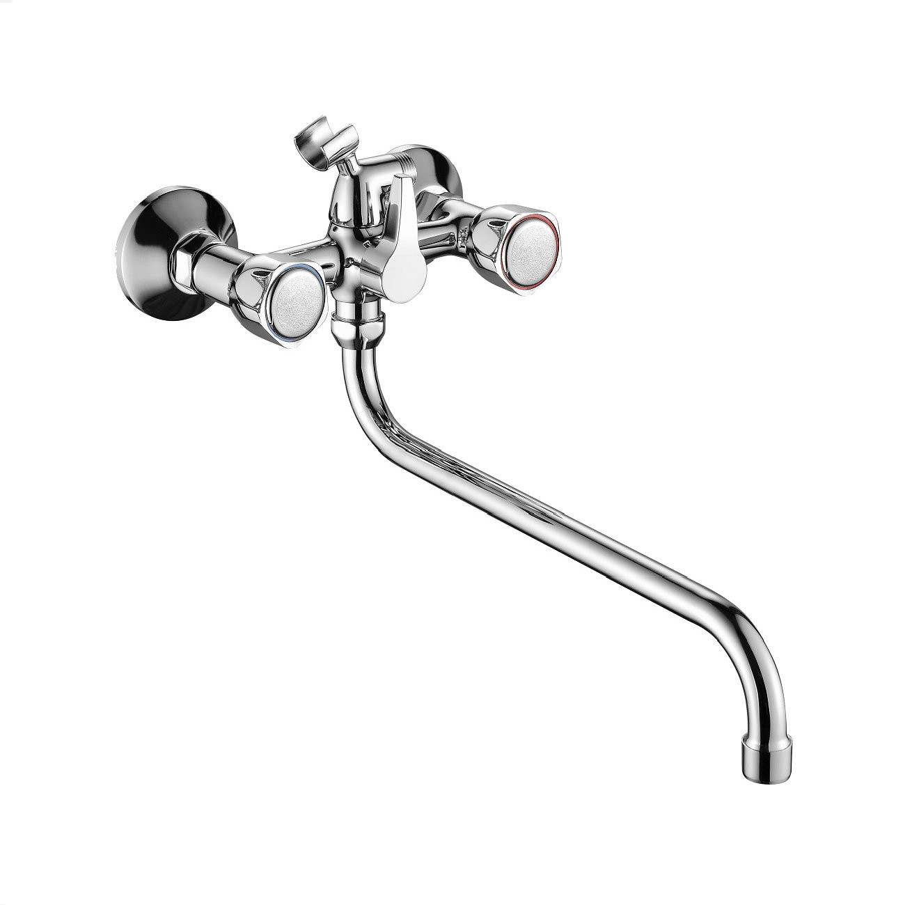 Смеситель для ванны FASHUN A2209-2, хром. Материал: латунь. Вращение излива: поворотный. Управление: вентильное. Душевой гарнитур в комплекте: да.