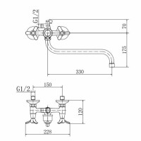 Смеситель для ванны FASHUN A2212, хром. Материал: латунь. Вращение излива: поворотный. Управление: вентильное. Душевой гарнитур в комплекте: да.
