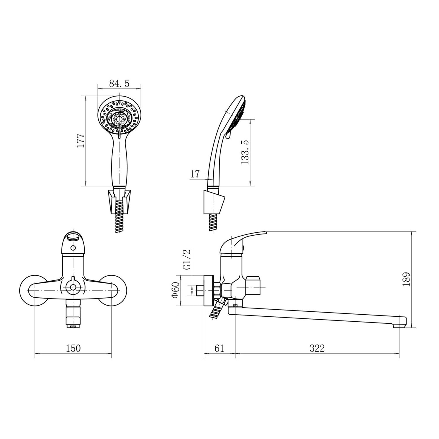 Длина шланга, см: 150;