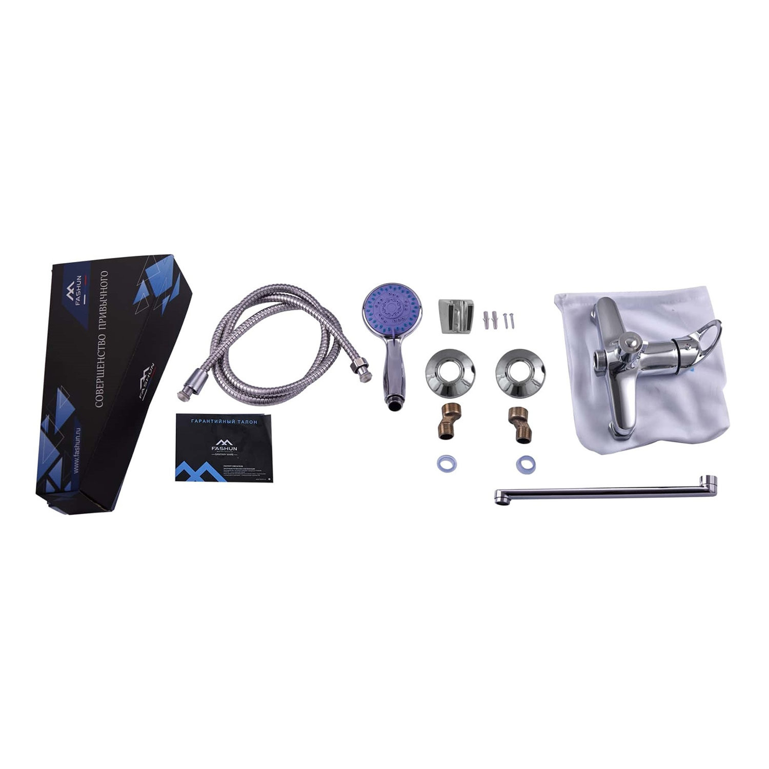 Комплектация: смеситель, лейка, шланг, держатель лейки, отражатели, эксцентрики;