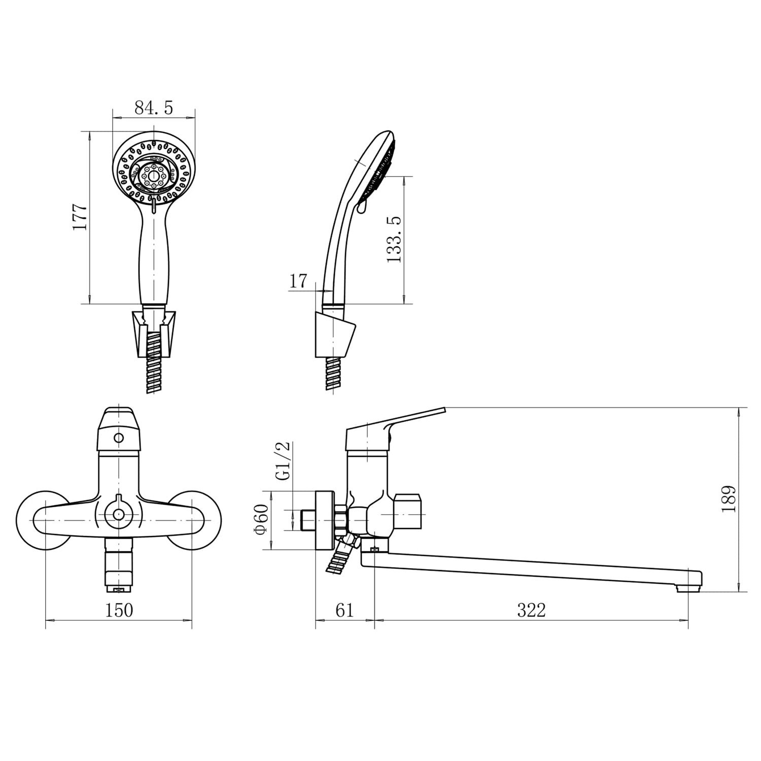 Комплектация: смеситель, лейка, шланг, держатель лейки, отражатели, эксцентрики;