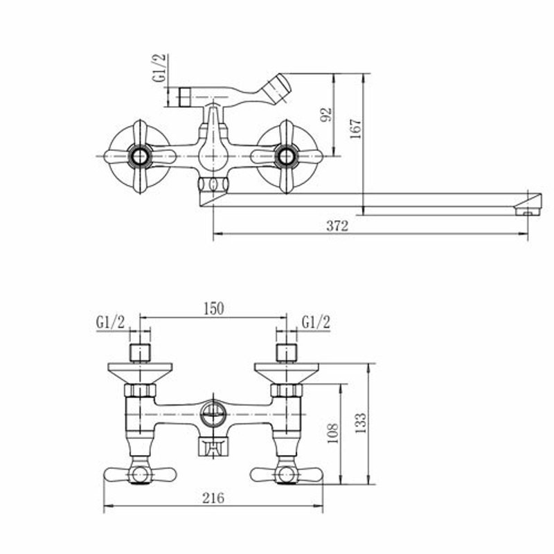 Смеситель для ванны FASHUN A2225, хром. Материал: латунь. Вращение излива: поворотный. Управление: вентильное. Душевой гарнитур в комплекте: да.