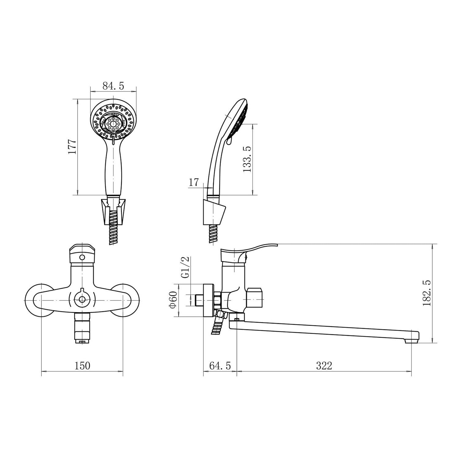 Длина шланга, см: 150;