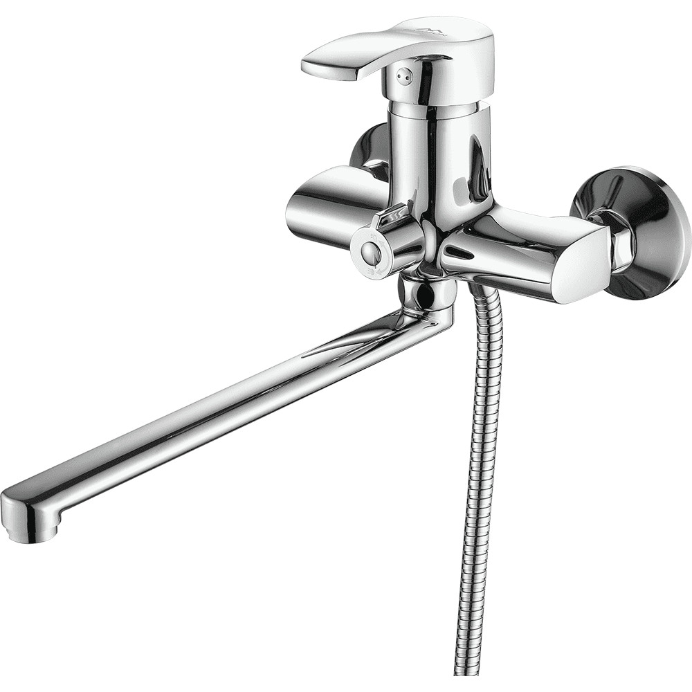 Смеситель для ванны FASHUN A2270, хром. Материал: латунь. Вращение излива: поворотный. Управление: рычажное. Душевой гарнитур в комплекте: да.