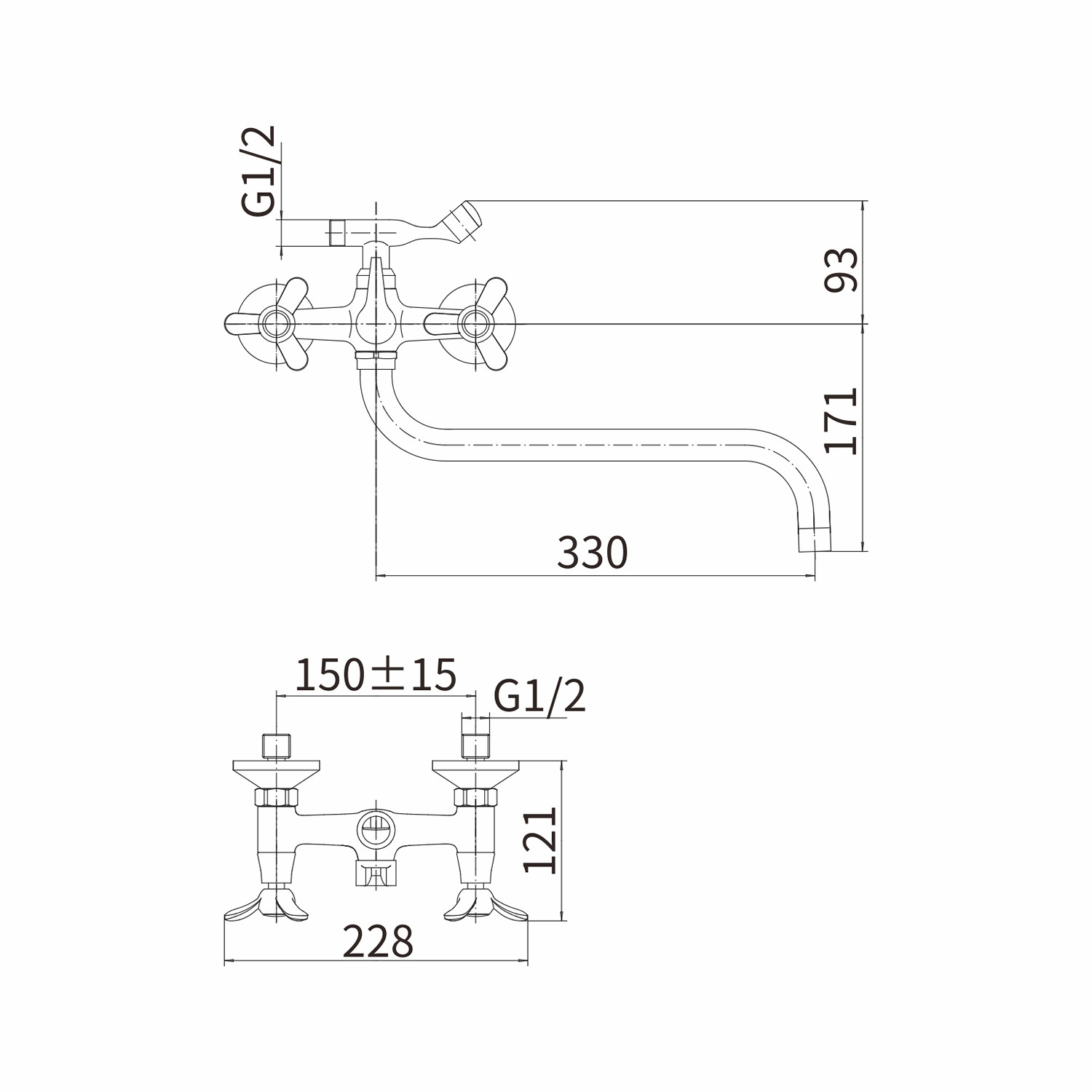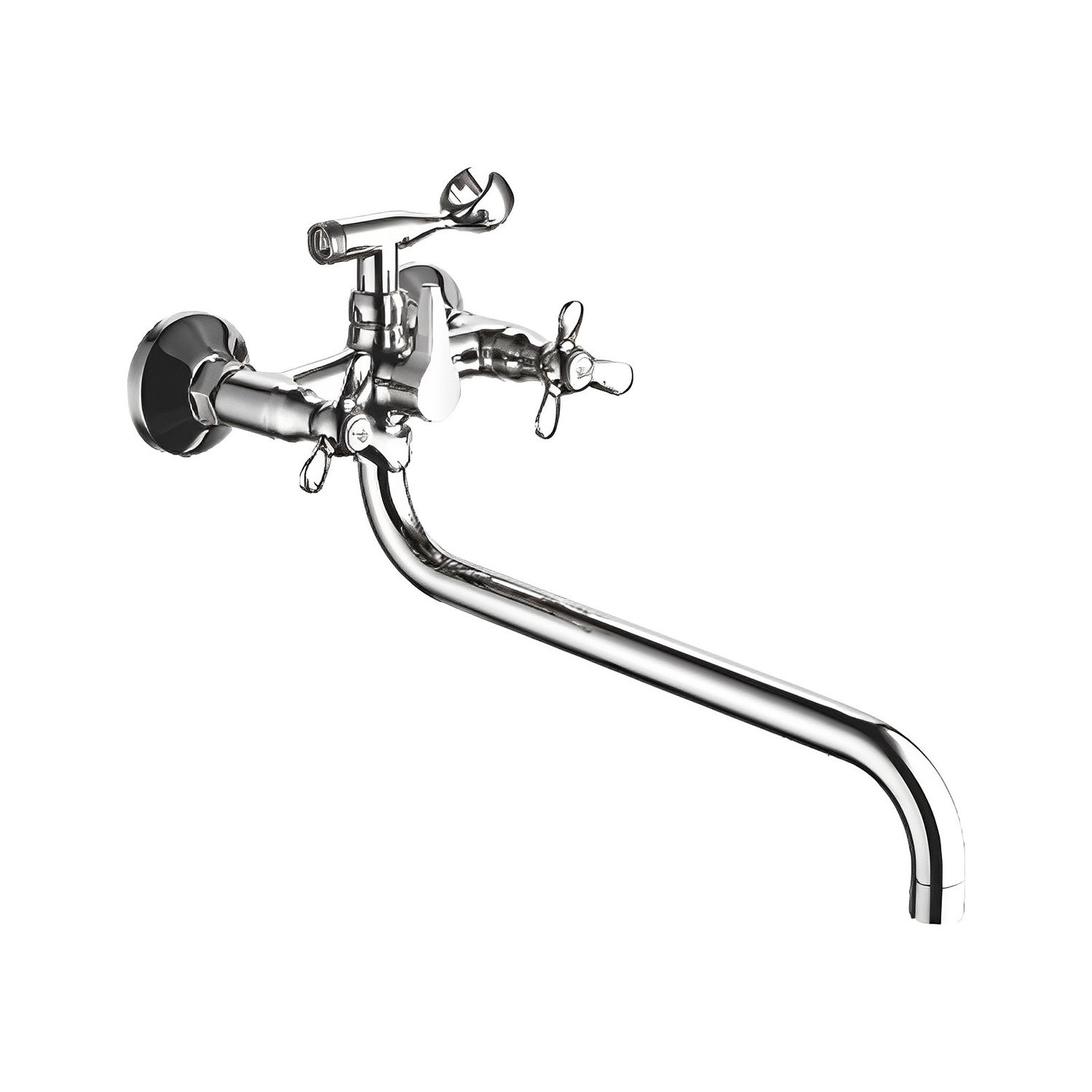 Смеситель для ванны FASHUN A2612, хром. Материал: латунь. Вращение излива: поворотный. Управление: вентильное. Душевой гарнитур в комплекте: да.