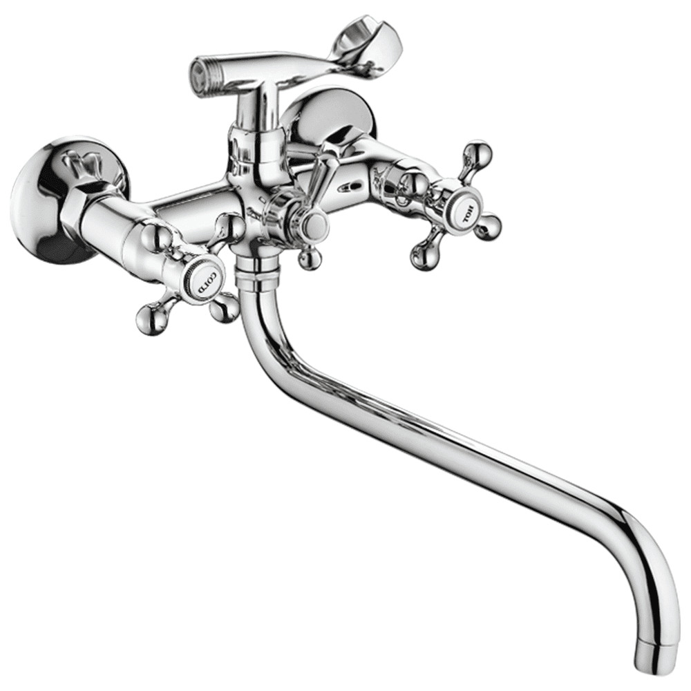 Смеситель для ванны FASHUN A2619, хром. Материал: латунь. Вращение излива: поворотный. Управление: вентильное. Душевой гарнитур в комплекте: да.