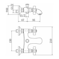 смеситель ванно-душевой с душевым гарнитуром с керамич. ручками