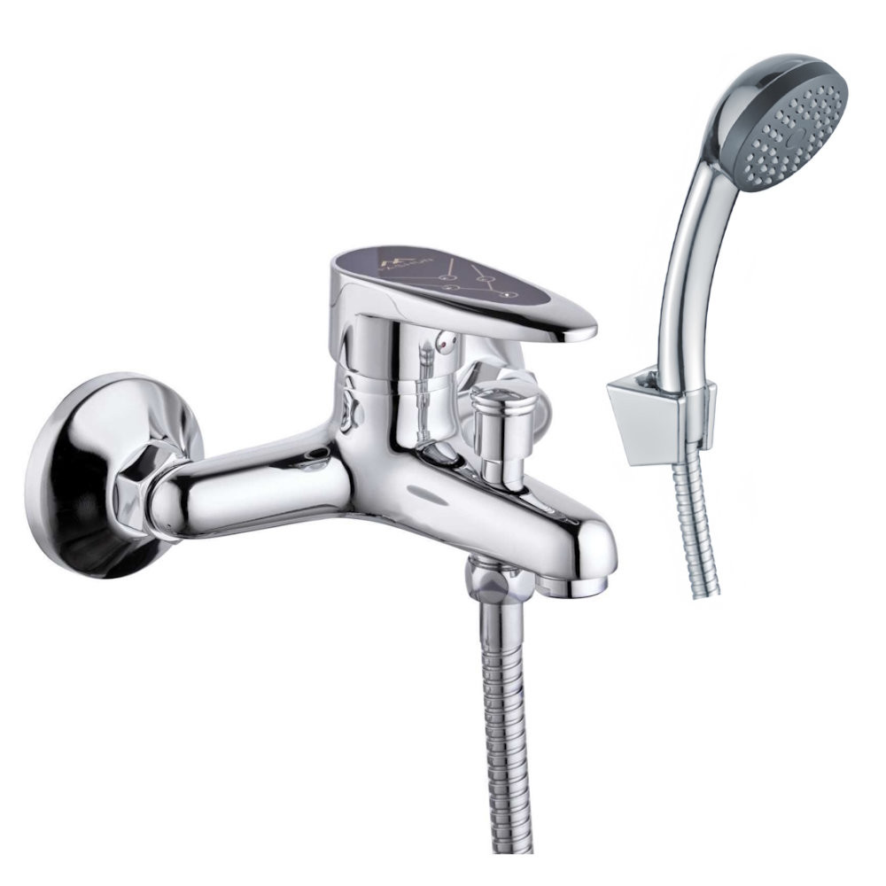 смеситель ванно-душевой с душевым гарнитуром и цветной ручкой (чёрная)