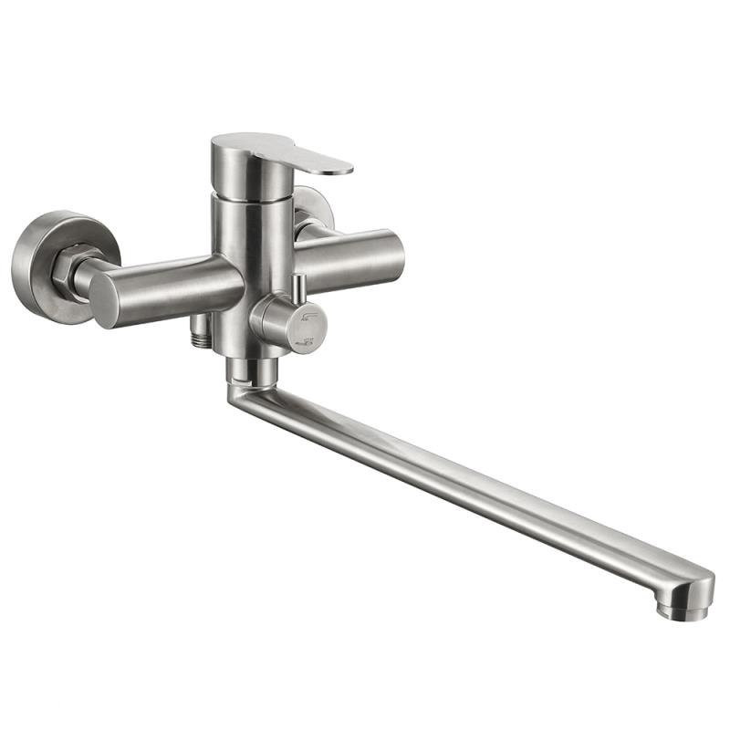 Смеситель для ванны FASHUN A52201, сатин. Материал: нержавеющая сталь. Вращение излива: поворотный. Управление: рычажное. Душевой гарнитур в комплекте: да.