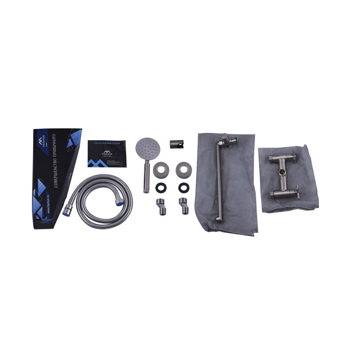 Комплектация: смеситель, лейка, шланг, держатель лейки, отражатели, эксцентрики;