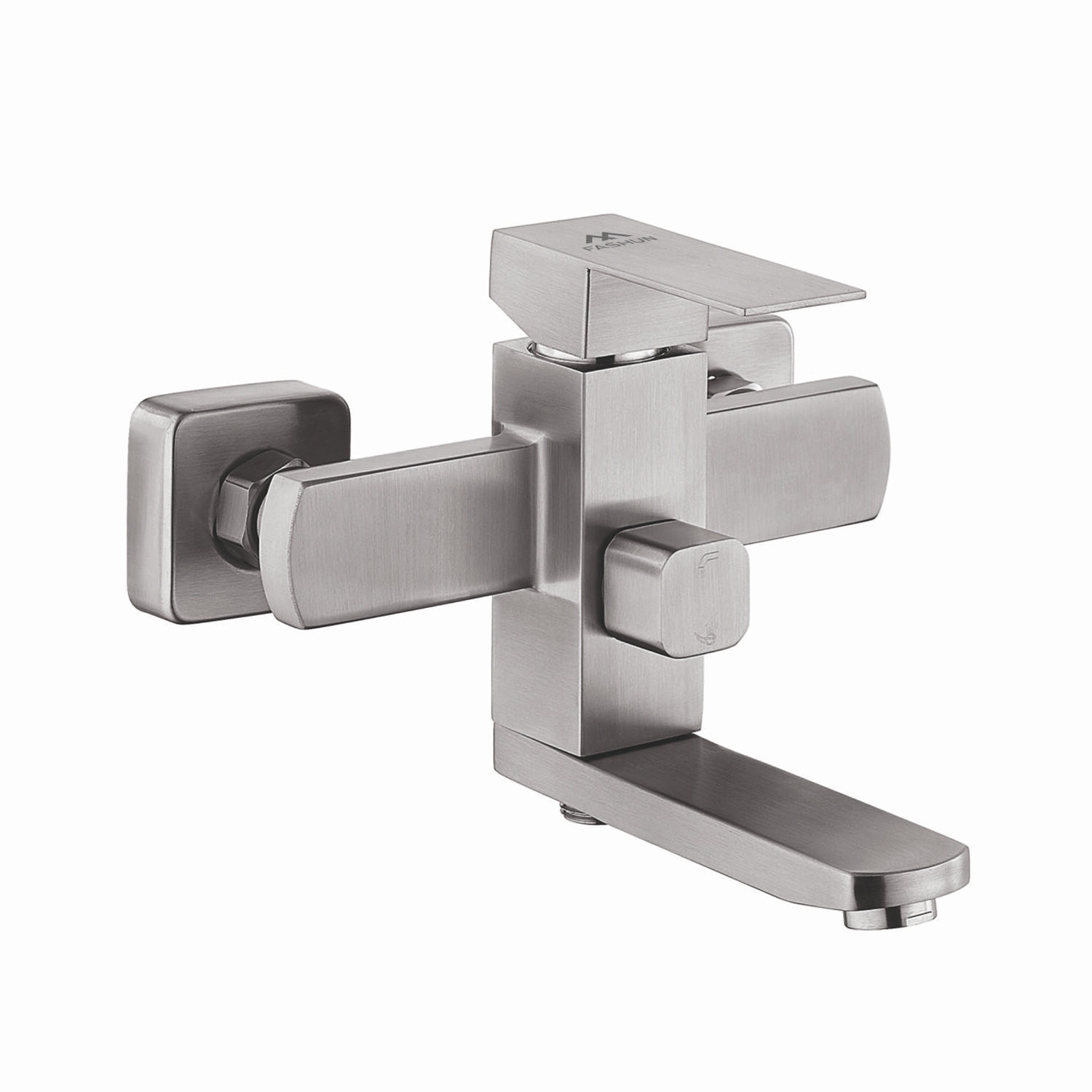Смеситель для ванны FASHUN A53002, сатин. Материал: нержавеющая сталь. Вращение излива: поворотный. Управление: рычажное. Душевой гарнитур в комплекте: да.