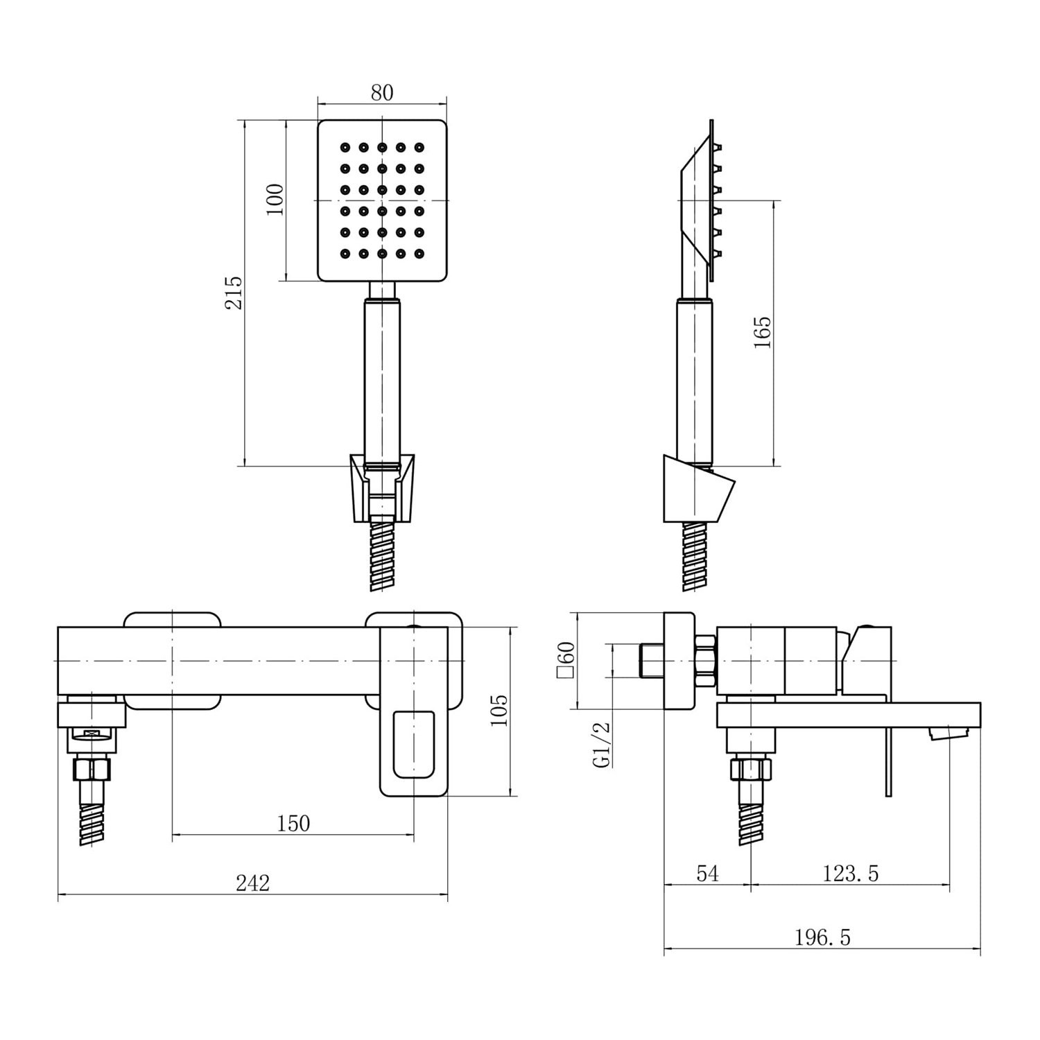 ручная лейка: сталь SUS304, 100х80 мм, 1 режим, антикальк