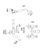 Комплектация: смеситель, душевая лейка, держатель лейки, шланг;