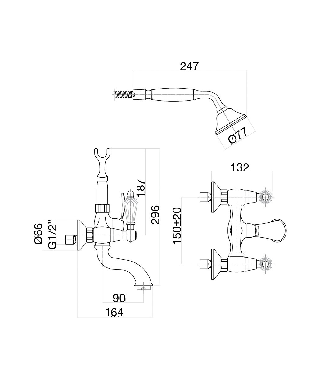 Смеситель для ванны Fiore. Керамическая ручка лейки. Оригинальные кристаллы SWAROVSKI®