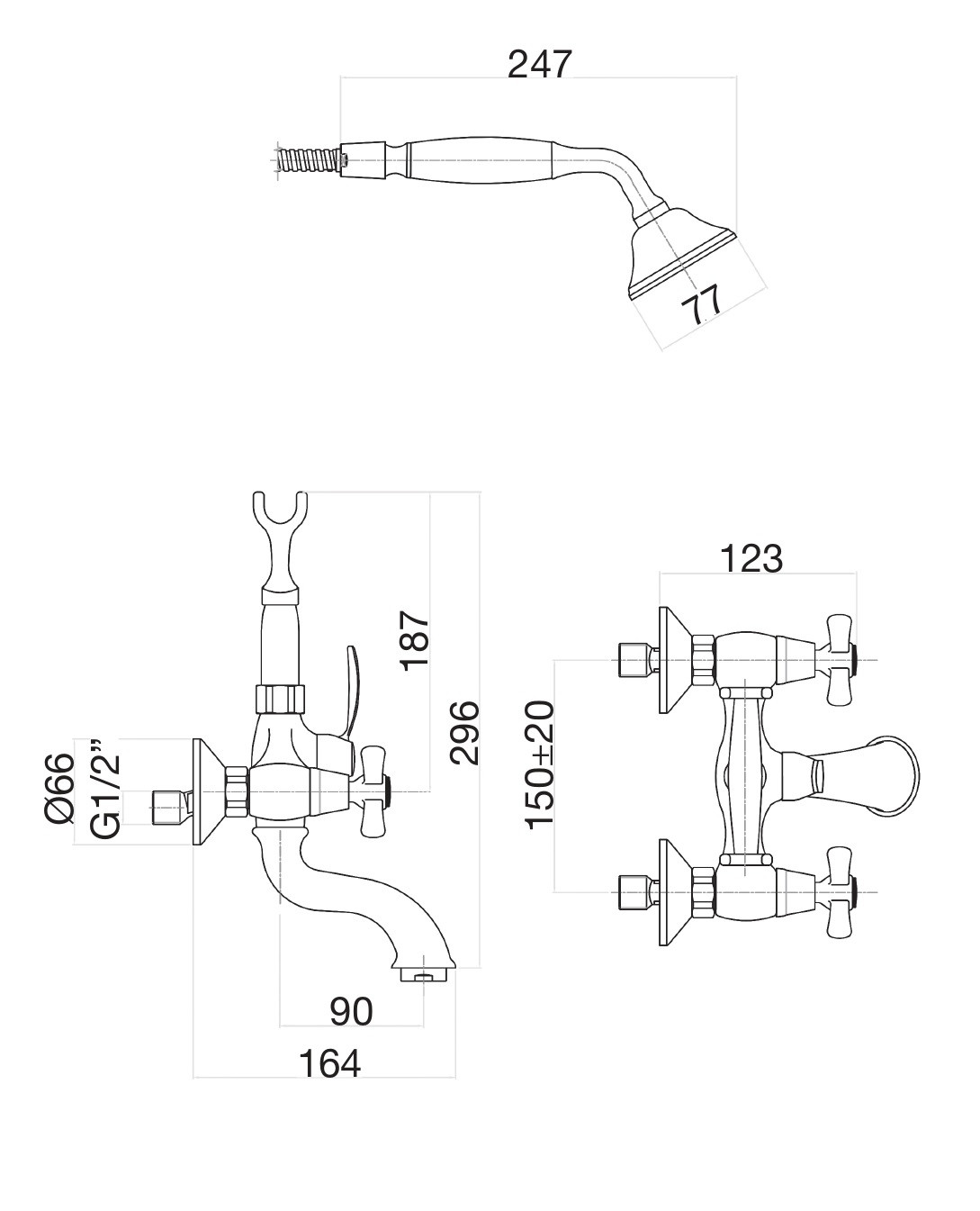 Смеситель для ванны Fiore. Керамическая ручка лейки.