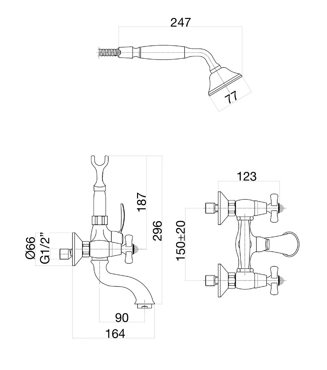 Смеситель для ванны Fiore. Керамическая ручка лейки. Оригинальные кристаллы SWAROVSKI®