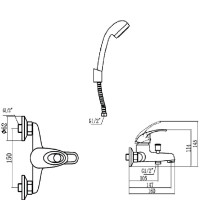 Комплектация: Смеситель, шланг, душевая лейка, держатель душевой лейки, эксцентрики, инструкция;