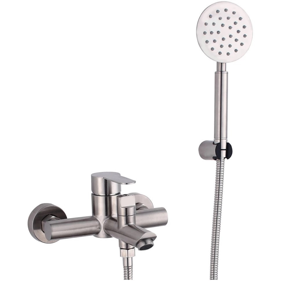 Комплектация: Смеситель, шланг, душевая лейка, держатель душевой лейки, эксцентрики, инструкция;