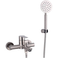 Смеситель для ванны Fmark FS8204, сатин. Душевой гарнитур в комплекте. Керамический картридж. Подводка 1/2". Оснащение: аэратор, металлическая розетка, эксцентрики, душевой шланг, душевая лейка, держатель для душевой лейки. Материал лейки: нержавеющая сталь. Диаметр лейки 9,8 см. Гарантия: 5 лет.
