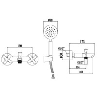 Комплектация: Смеситель, шланг, душевая лейка, держатель душевой лейки, эксцентрики, инструкция;