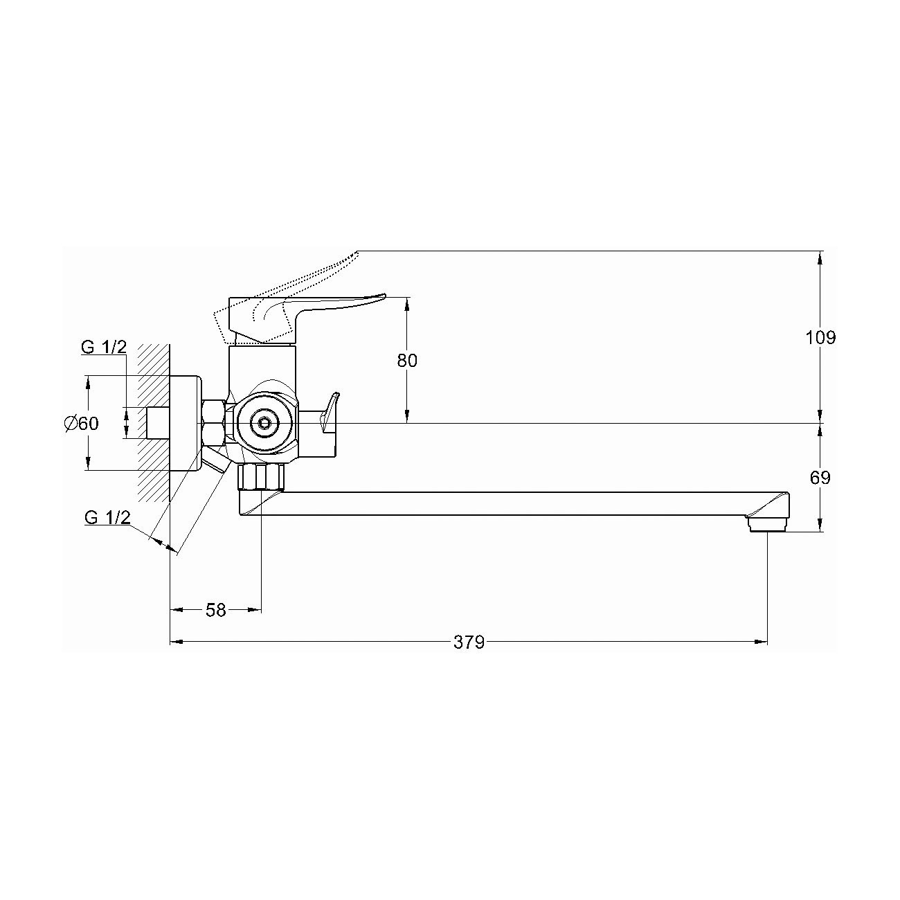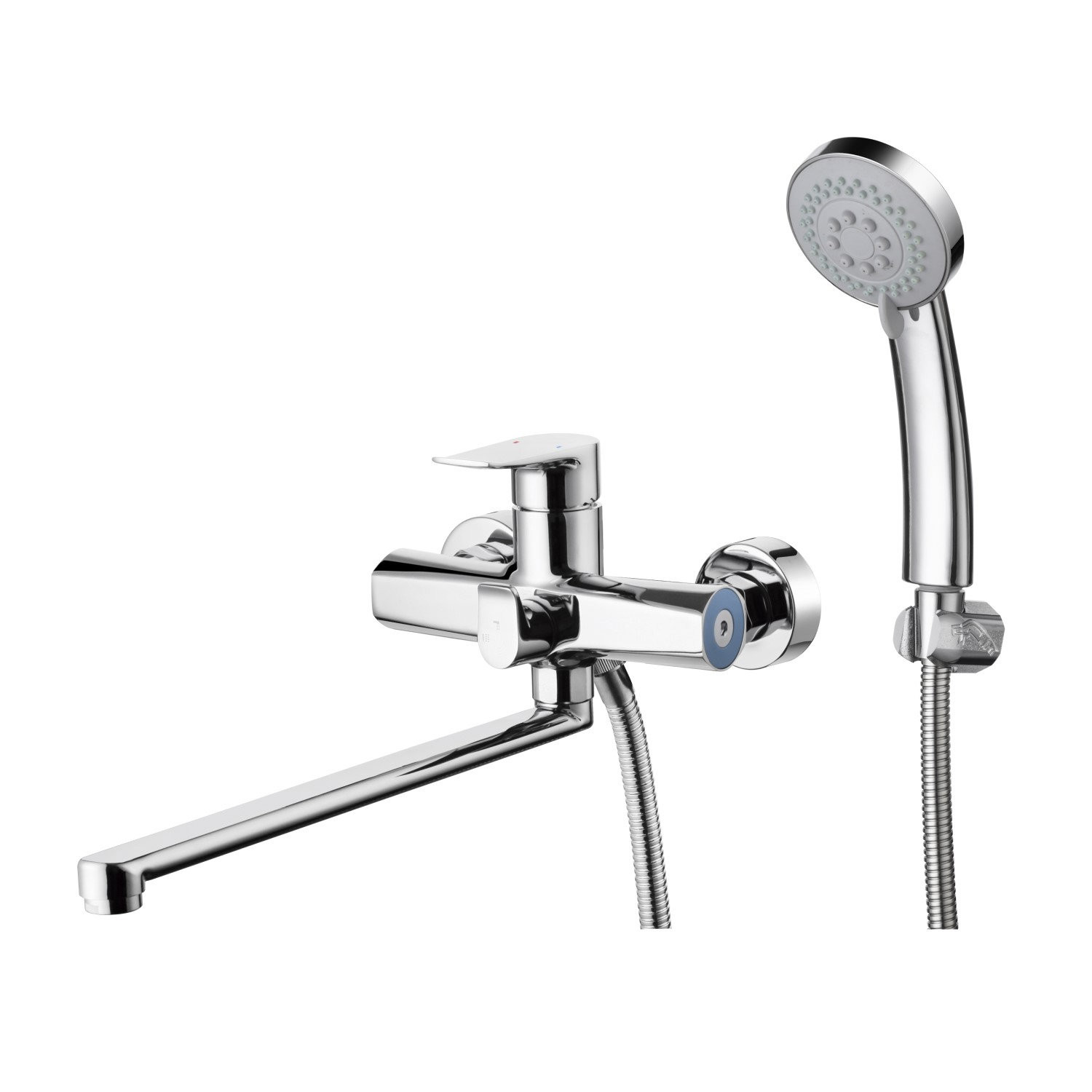 Комплектация: смеситель, душевая лейка, настенный держатель душевой лейки, душевой шланг, эксцентрики, декоративные отражатели;