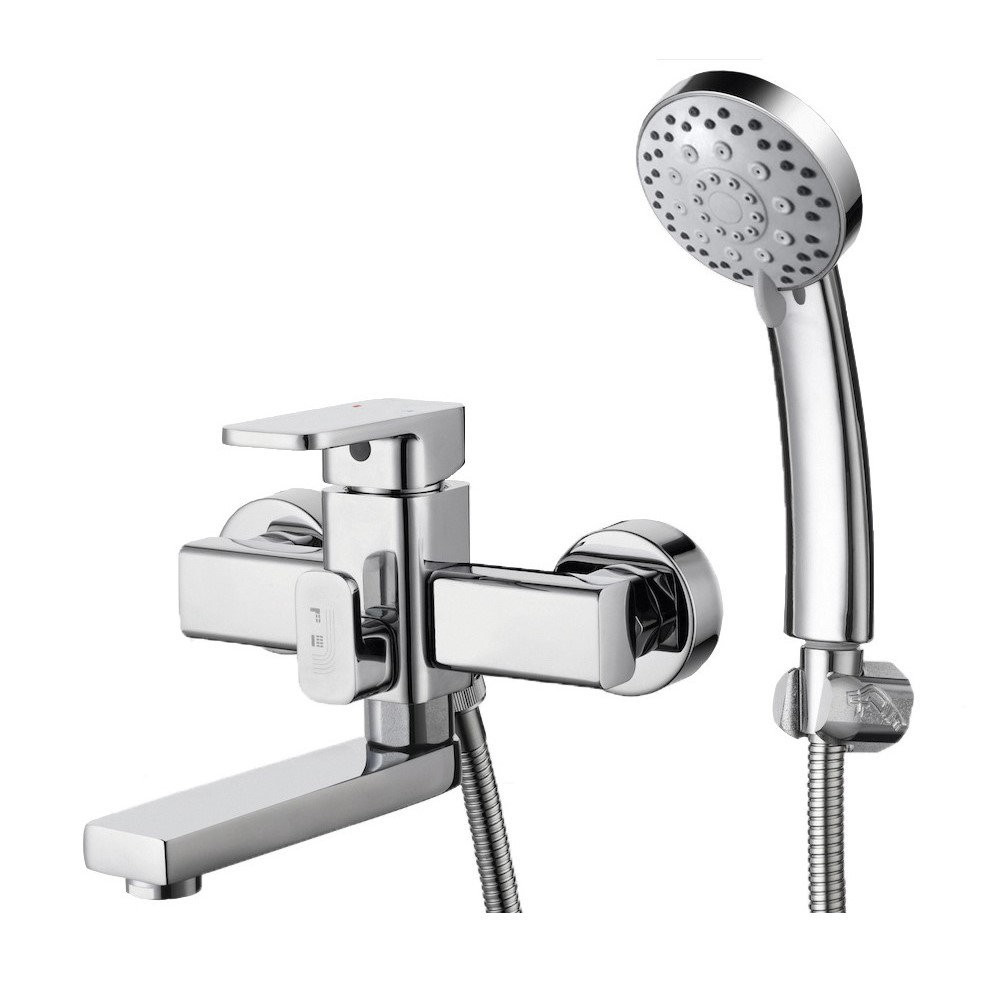 Комплектация: смеситель, душевая лейка, настенный держатель душевой лейки, душевой шланг, эксцентрики, декоративные отражатели;