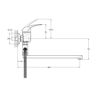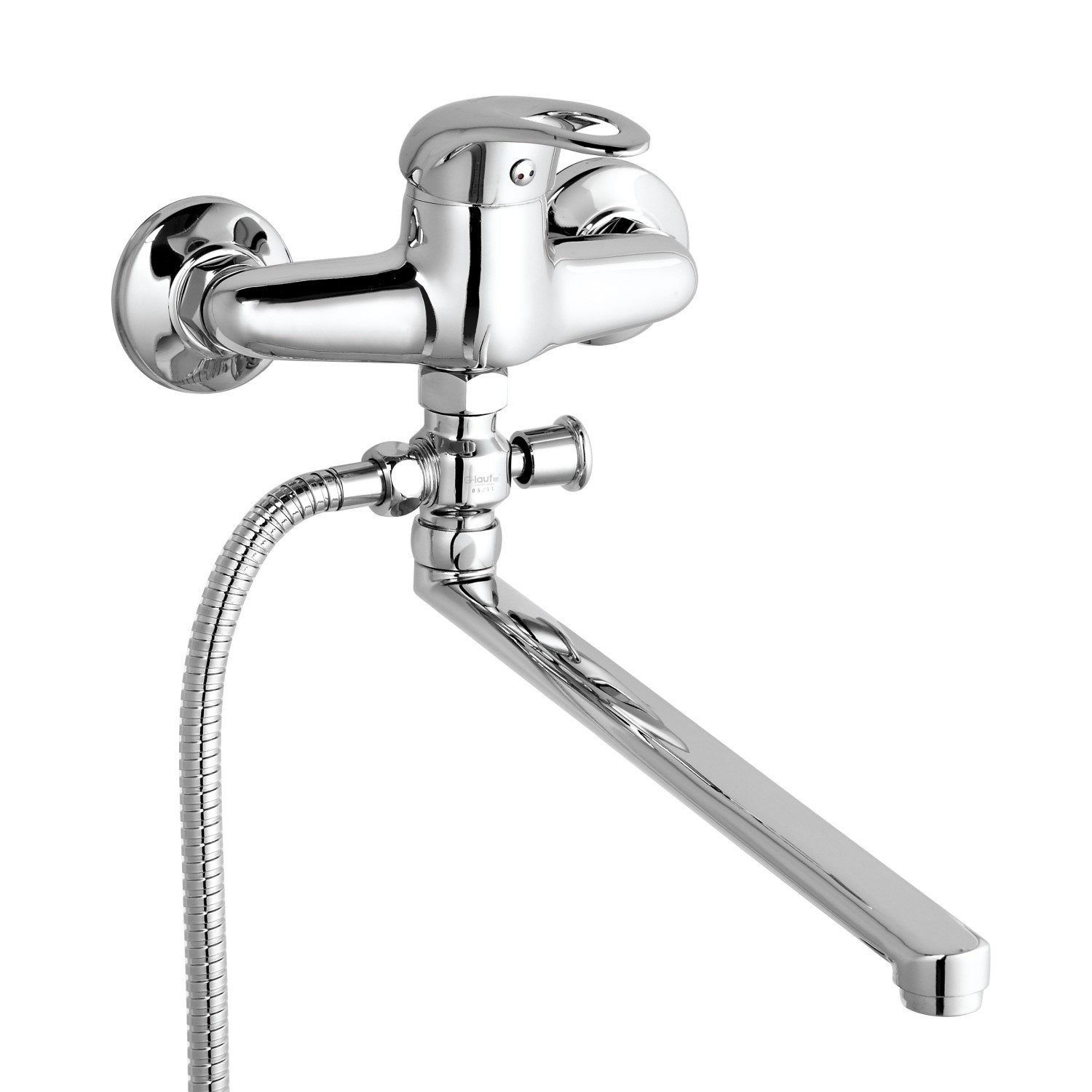Комплектация: смеситель, душевая лейка, настенный держатель душевой лейки, душевой шланг, эксцентрики, декоративные отражатели;