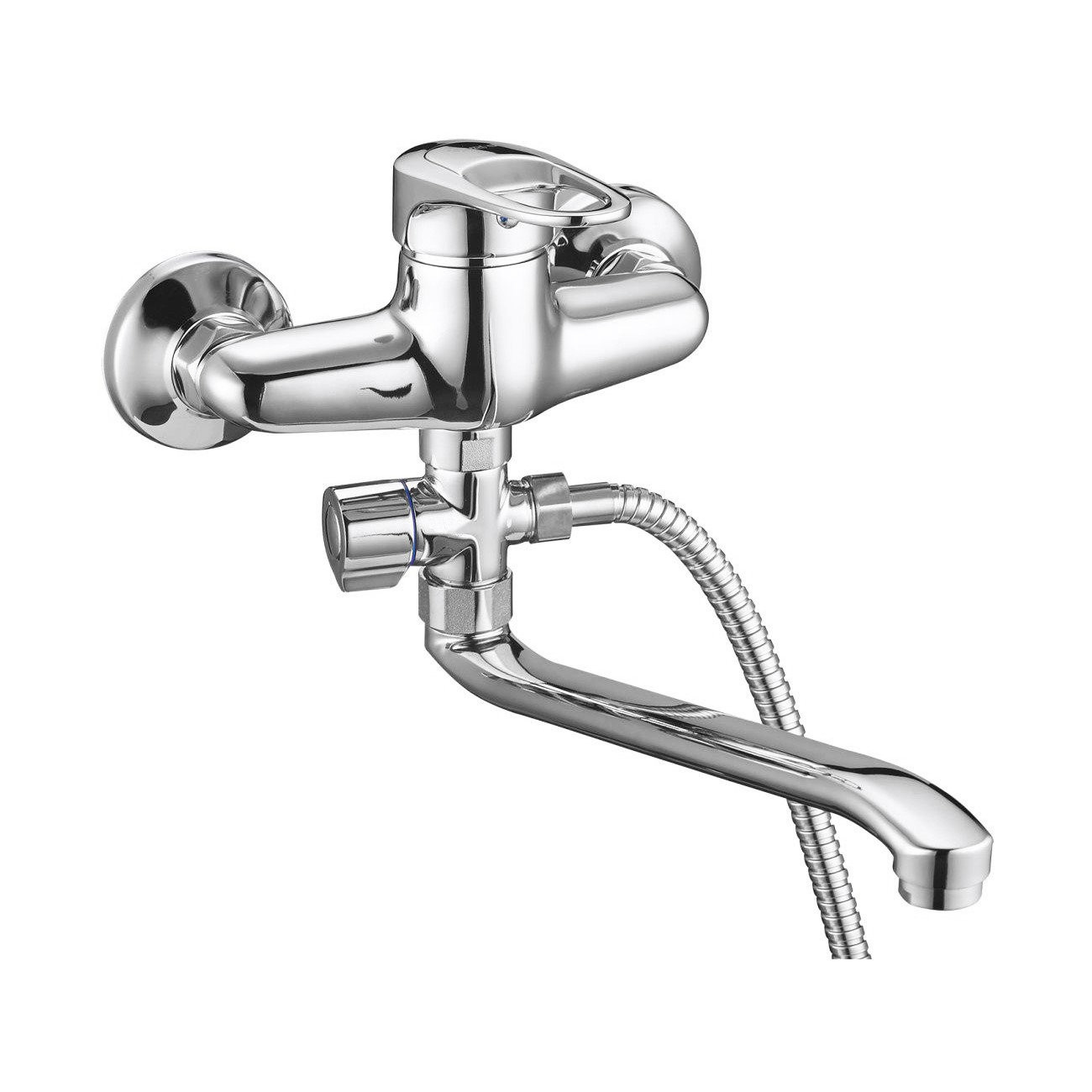 Комплектация: смеситель, душевая лейка, настенный держатель душевой лейки, душевой шланг, эксцентрики, декоративные отражатели;