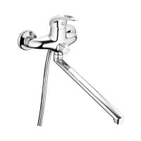 Комплектация: смеситель, душевая лейка, настенный держатель душевой лейки, душевой шланг, эксцентрики, декоративные отражатели;