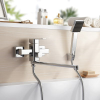 Комплектация: смеситель, душевая лейка, настенный держатель душевой лейки, душевой шланг, эксцентрики, декоративные отражатели;