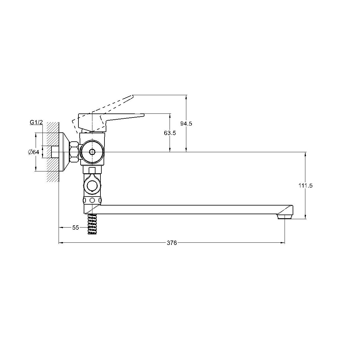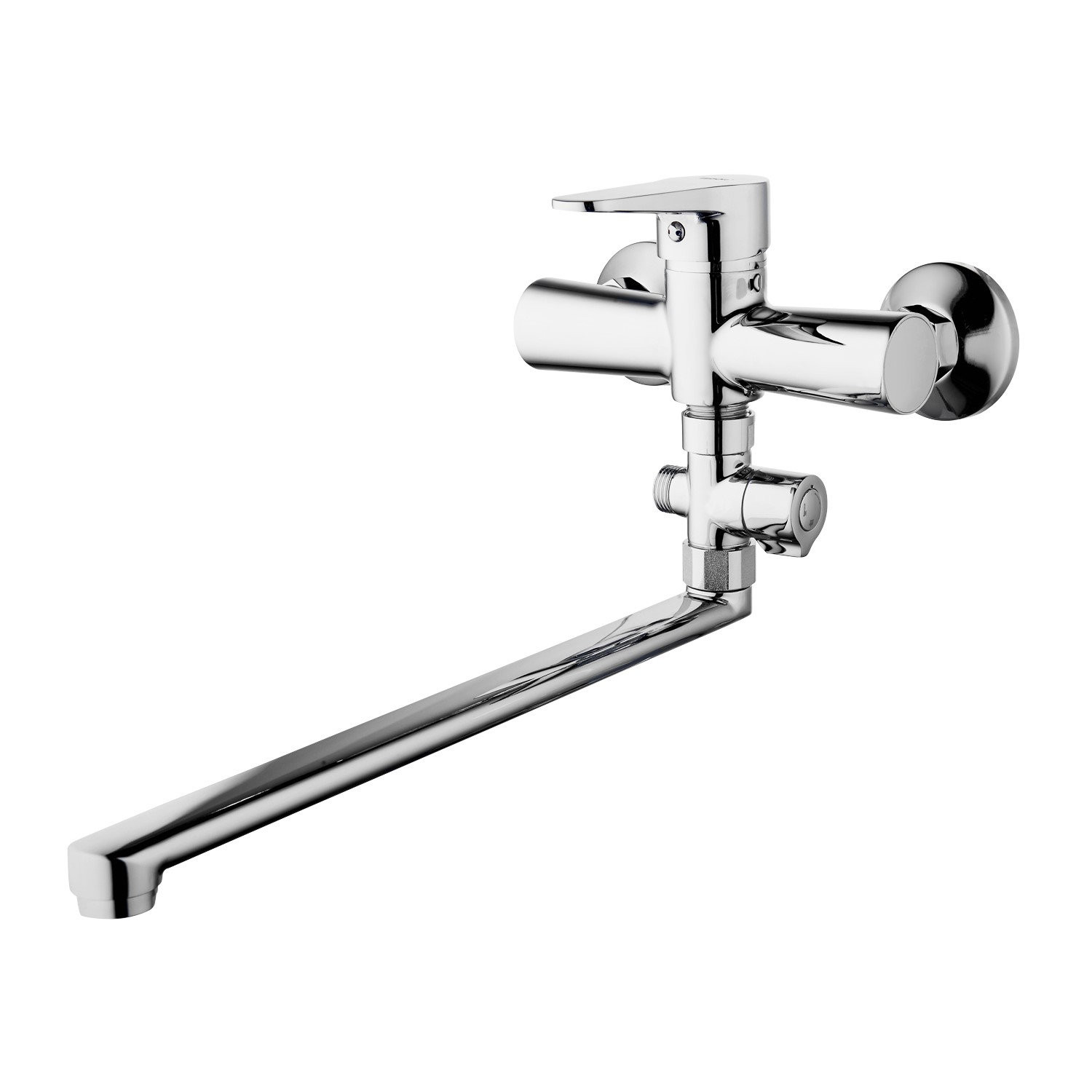 Комплектация: смеситель, душевая лейка, настенный держатель душевой лейки, душевой шланг, эксцентрики, декоративные отражатели;