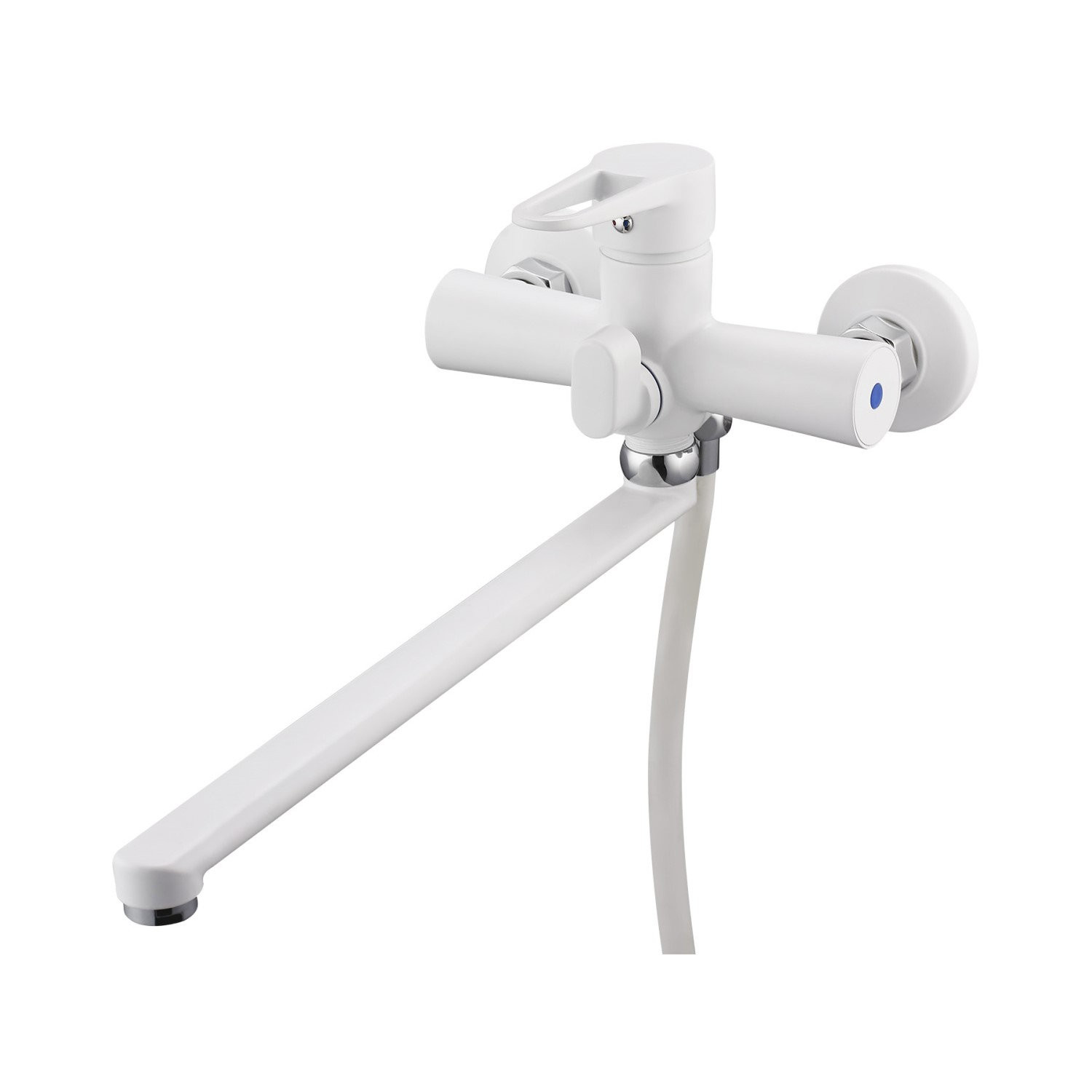 Комплектация: смеситель, душевая лейка, настенный держатель душевой лейки, душевой шланг, эксцентрики, декоративные отражатели;