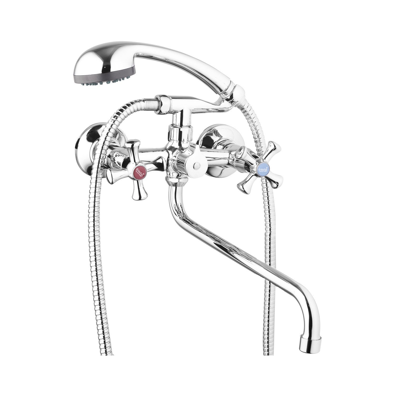 Комплектация: смеситель, душевая лейка, настенный держатель душевой лейки, душевой шланг, эксцентрики, декоративные отражатели;