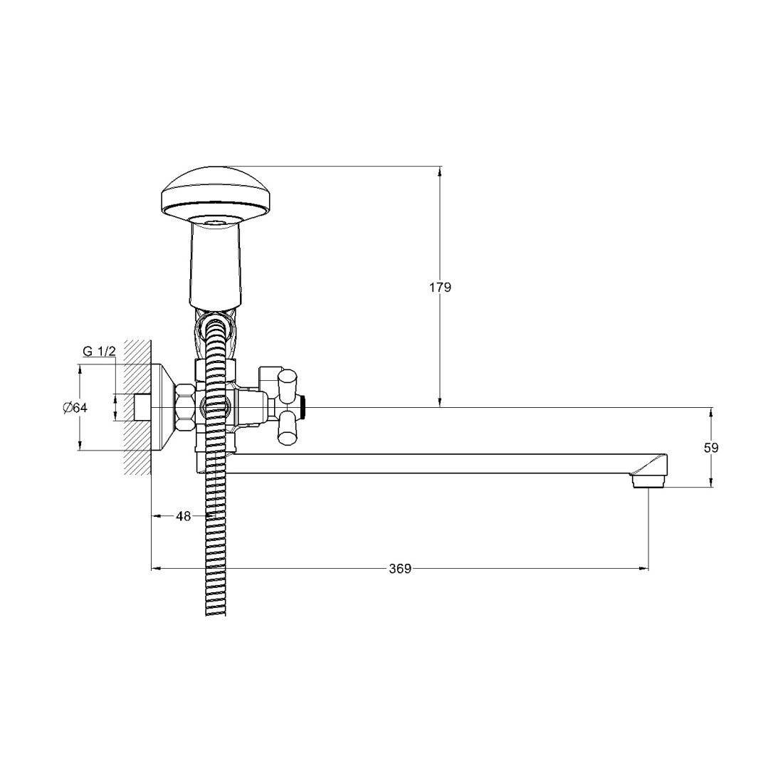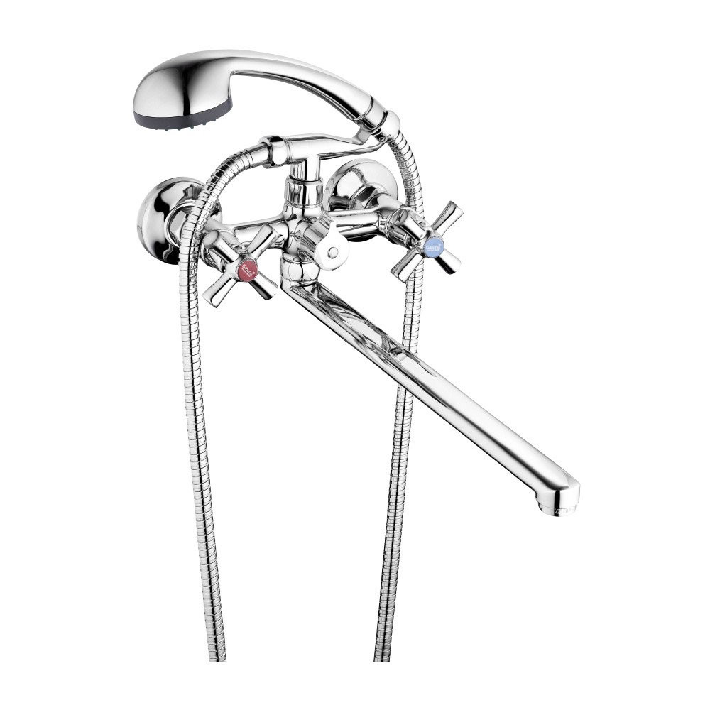 Комплектация: смеситель, душевая лейка, настенный держатель душевой лейки, душевой шланг, эксцентрики, декоративные отражатели;
