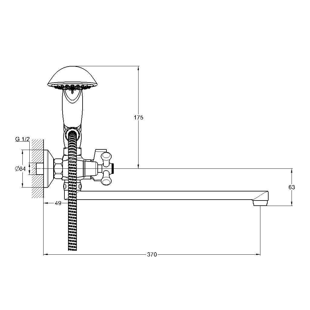 Комплектация: смеситель, душевая лейка, настенный держатель душевой лейки, душевой шланг, эксцентрики, декоративные отражатели;