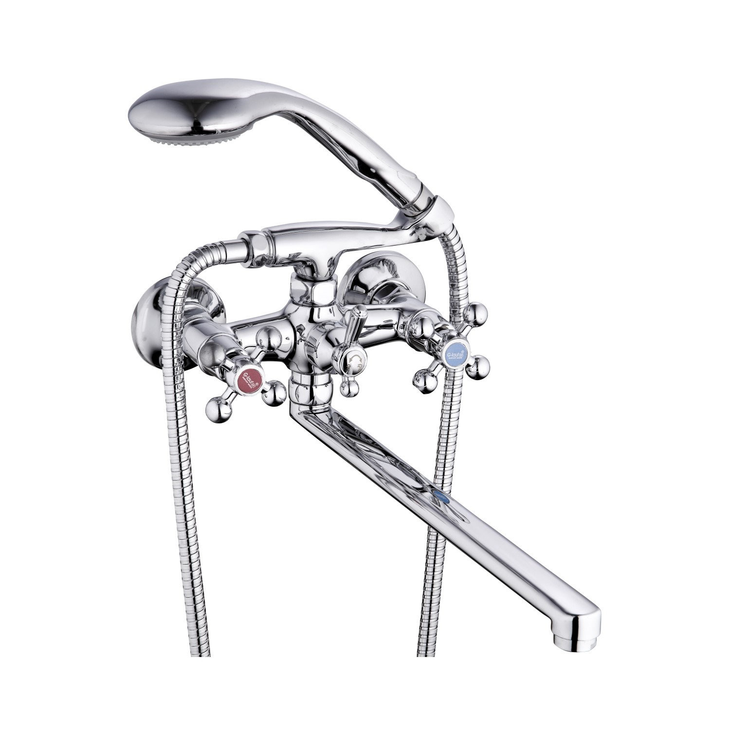 Комплектация: смеситель, душевая лейка, настенный держатель душевой лейки, душевой шланг, эксцентрики, декоративные отражатели;
