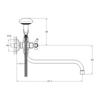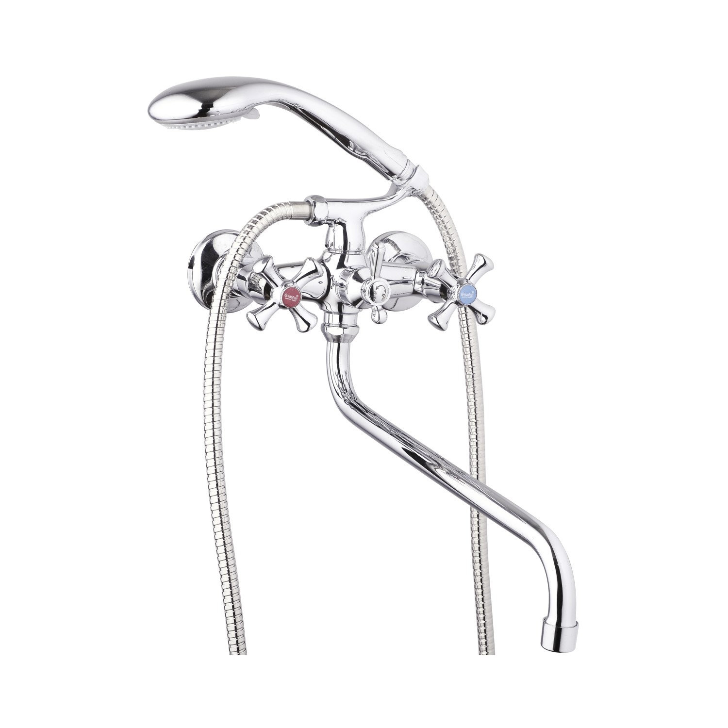 Комплектация: смеситель, душевая лейка, настенный держатель душевой лейки, душевой шланг, эксцентрики, декоративные отражатели;