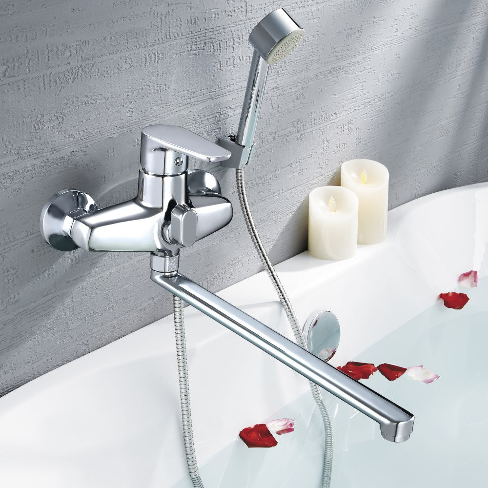 Комплектация: смеситель, душевая лейка, настенный держатель душевой лейки, душевой шланг, эксцентрики, декоративные отражатели;