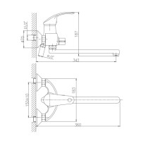 Керамический картридж 40 мм. Диаметр декоративных чашек 70 мм. Душевой гарнитур в комплекте. Межосевое расстояние (расстояние между выходом горячей и холодной трубы) 150 мм. Данное расстояние изменяется за счет входящих в комплект эксцентриков на 10 мм в большую или меньшую стороны.