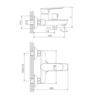 Комплектация: Смеситель, шланг, душевая лейка, держатель душевой лейки, эксцентрики, инструкция;