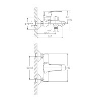 Керамический картридж 40 мм. Диаметр декоративных чашек 70 мм. Душевой гарнитур в комплекте. Межосевое расстояние (расстояние между выходом горячей и холодной трубы) 150 мм. Данное расстояние изменяется за счет входящих в комплект эксцентриков на 15 мм в большую или меньшую стороны.